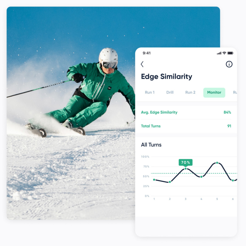 Try Carv's Edge Similarity Monitor for faster improvement. You'll get a live audio score from 0-100 after each turn, providing instant feedback as you ski.