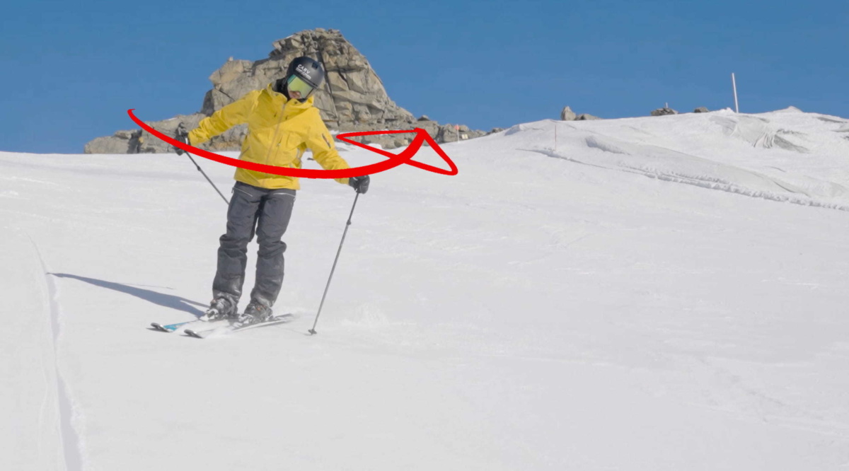 The aim is to turn with your legs and keep the upper body facing down the hill.
