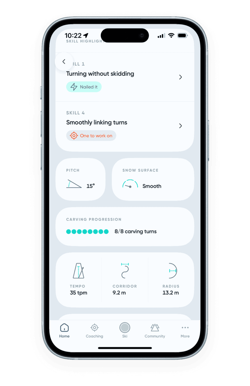 If you’re a Carv user, you can work on this skill with the ‘Steering with your legs’ skill in the Short Turns coaching pathway.