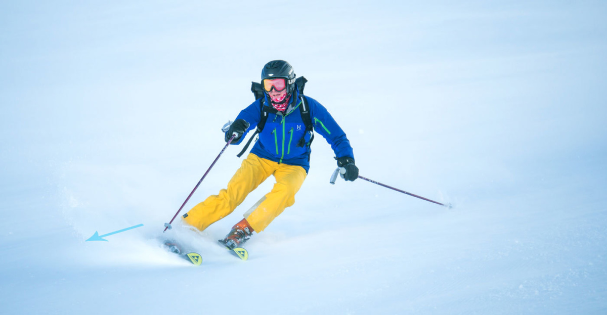 Finishing on the tails can propel the skier across the slope without enough control to smoothly enter the next turn