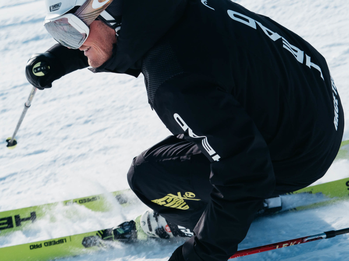 - Wide stance: As well as needing stability at these speeds, a wide stance gives you the space to roll the skis on edge.