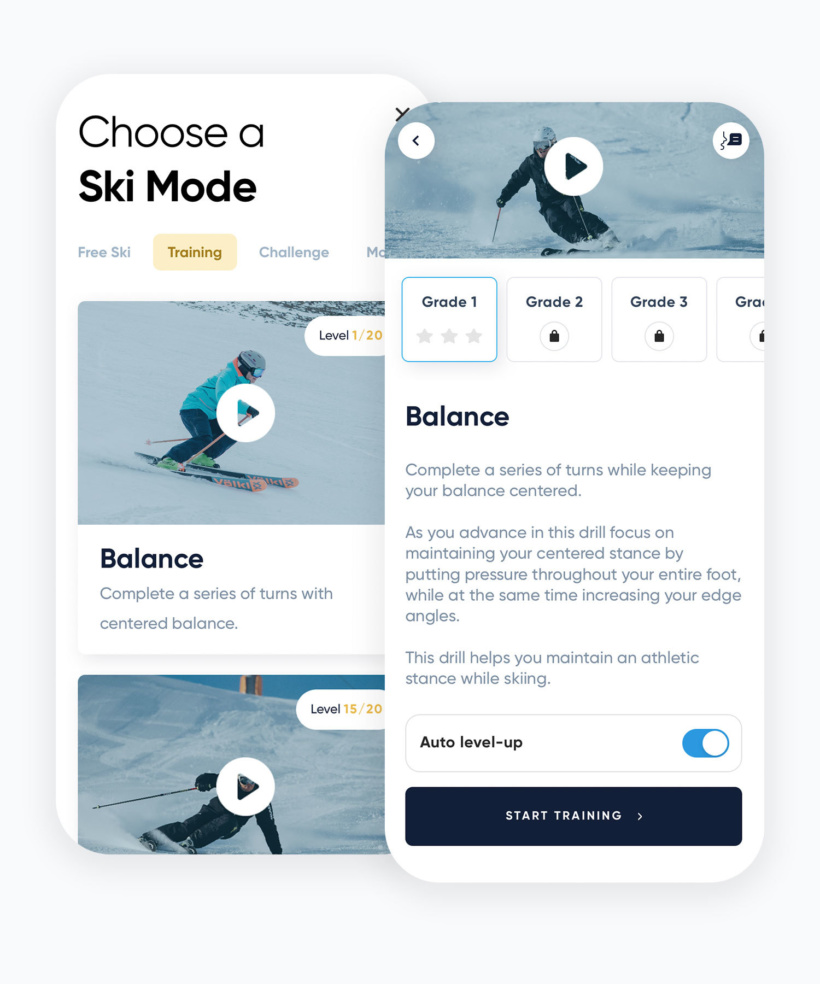 The Carv app has many features to designed to improve your balance and edging, allowing you to ski steeps assuredly. These drills have been created with Olympic racer Kaylin Richardson, and PSIA elite coach and demo-team skier Eric Lipton. Carv's interactive skiing Modes will take your skiing to the next level with turn-by-turn audio feedback, to help you get the most from your time on the slope.