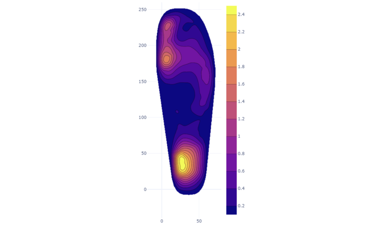 Average pressure heatmap aggregated from thousands of different users of a Carv insert under the liner in your ski boot.