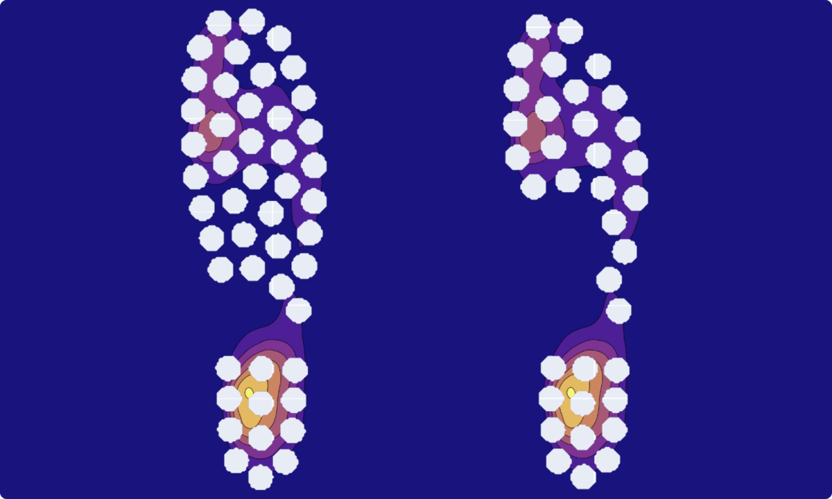 We started with 48 pressure sensors under each foot to ensure total coverage. But when we aggregated the pressure data from thousands of our skiers, it became clear that many sensors that sit under the midfoot weren’t being utilised (see graph below).