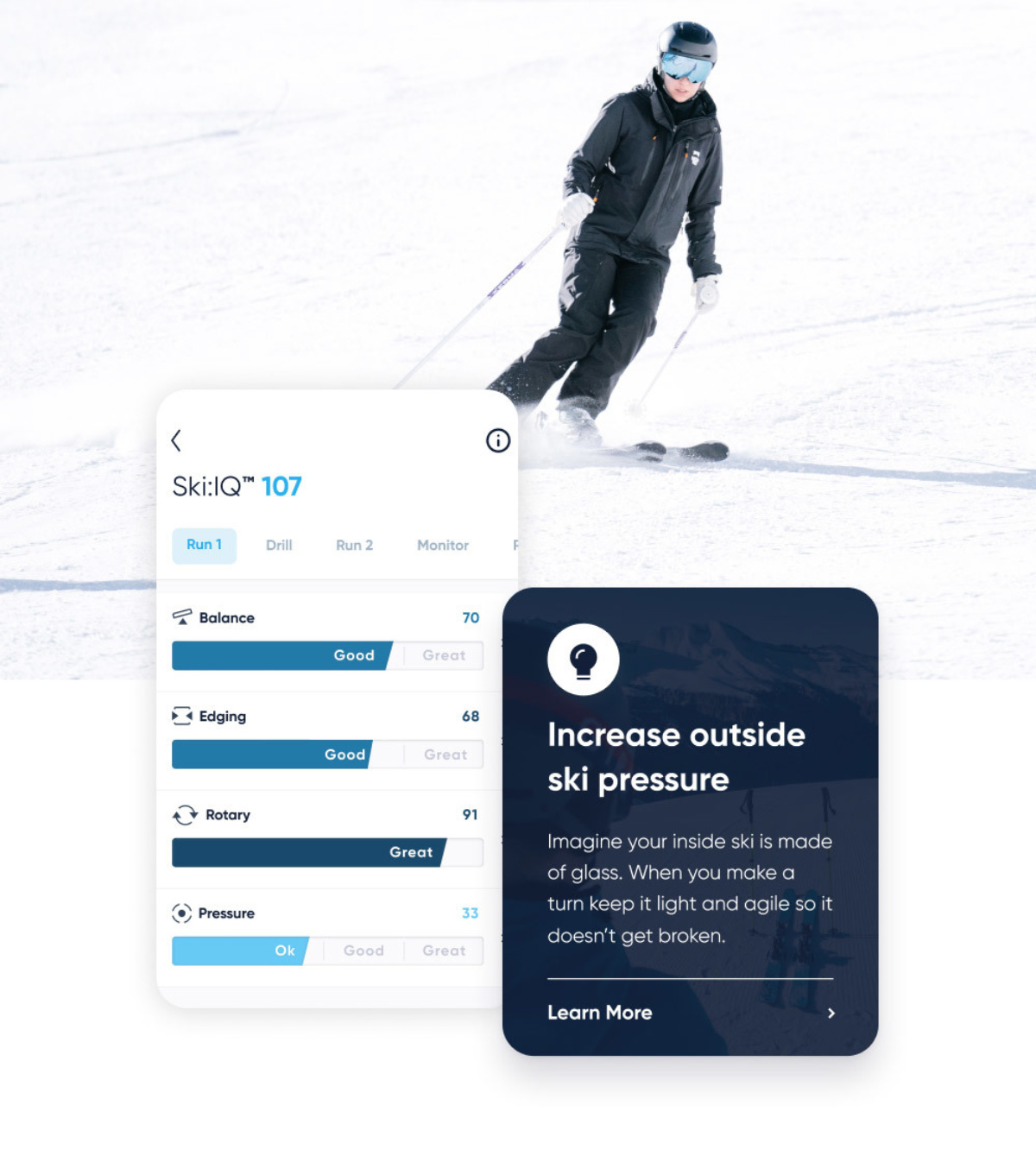 So we spend a huge amount of time and energy thinking about how to break down all the components of a perfect ski turn into one accurate score: Ski:IQ - giving you something to track and optimize against every day you go on the mountain.
