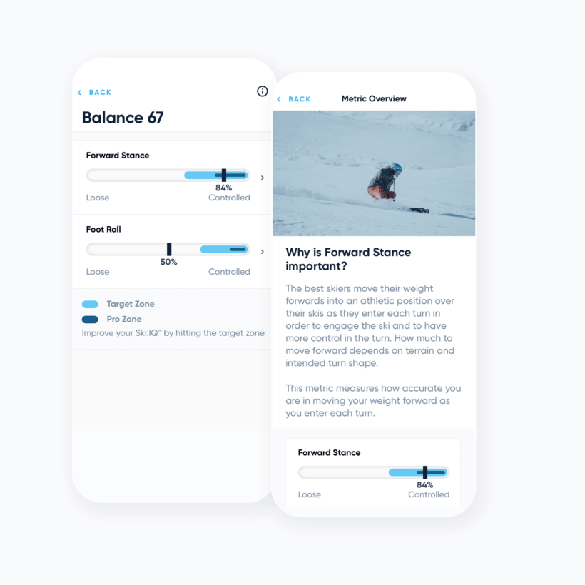 Carv measures your balance and pressure constantly as you ski. You'll find out if you're in the right position and what you need to do to fix it.