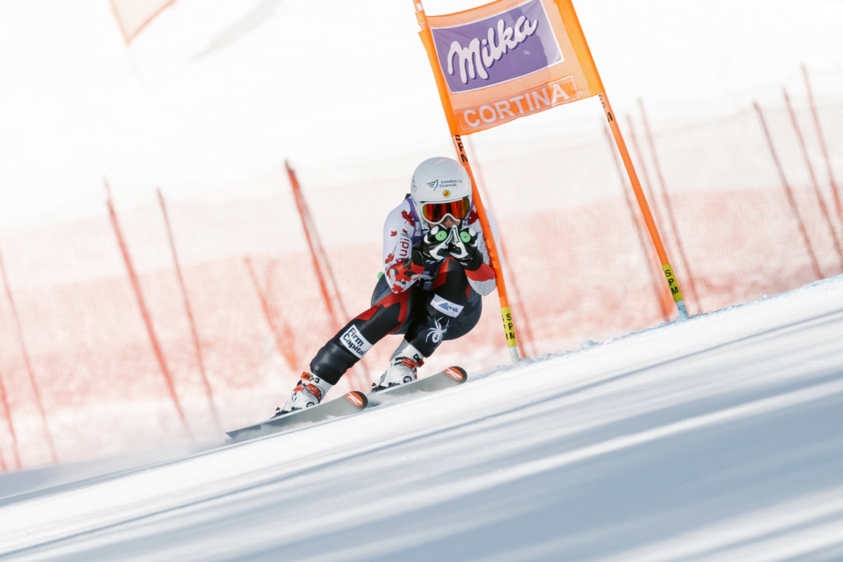 Larisa competing at the FIS downhill world cup Cortina, 2016